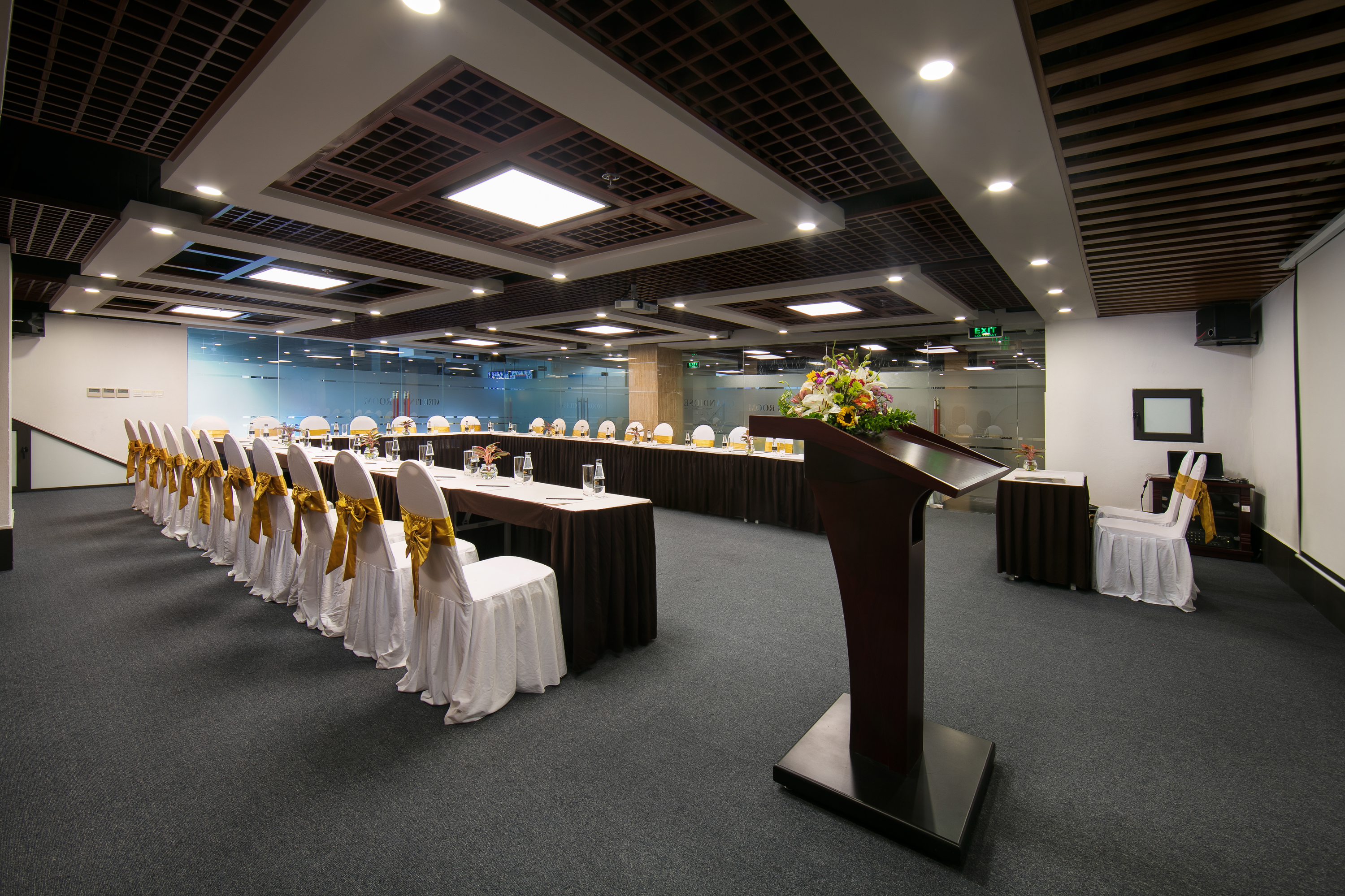 The meeting roon located on B1 floor with modern equipment and our professional and dedicated staff is ready to create you a superb conference and party. Number and capacity of meeting room: U-shaped: 50 pax Classroom: 70 pax Banquet: 40 pax Theatre: 80 pax